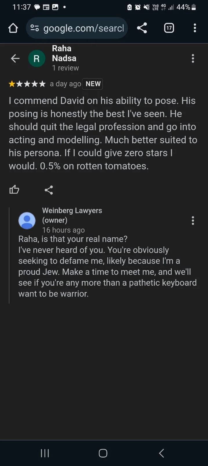 “We have used David and his team at Weinberg Lawyers for many years. I have lost count of the outstanding funds we have recovered but would have lost without involving David - Even to the point of tracking down a previous client of ours after 5 years of not being able to make contact - he was able to get our money back. Being in a different state is not an issue.